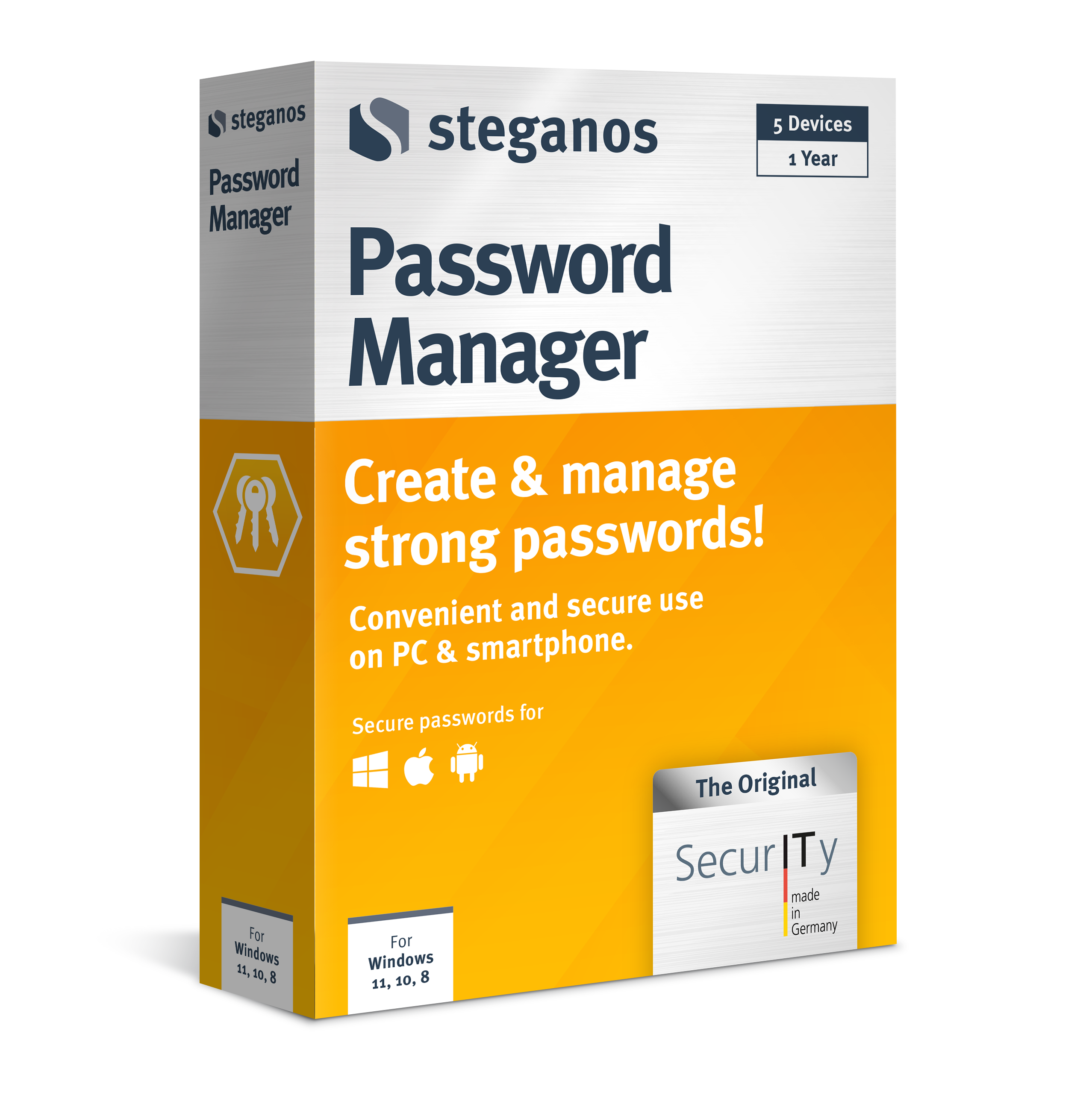 The password manager offers you an optimal and securely encrypted overview of all login data. It lets you create new, strong passwords at any time. An all-in-one solution that creates an overview and at the same time offers maximum security for your personal data, payment details and documents. Whether on your PC, smartphone or optionally in the cloud.