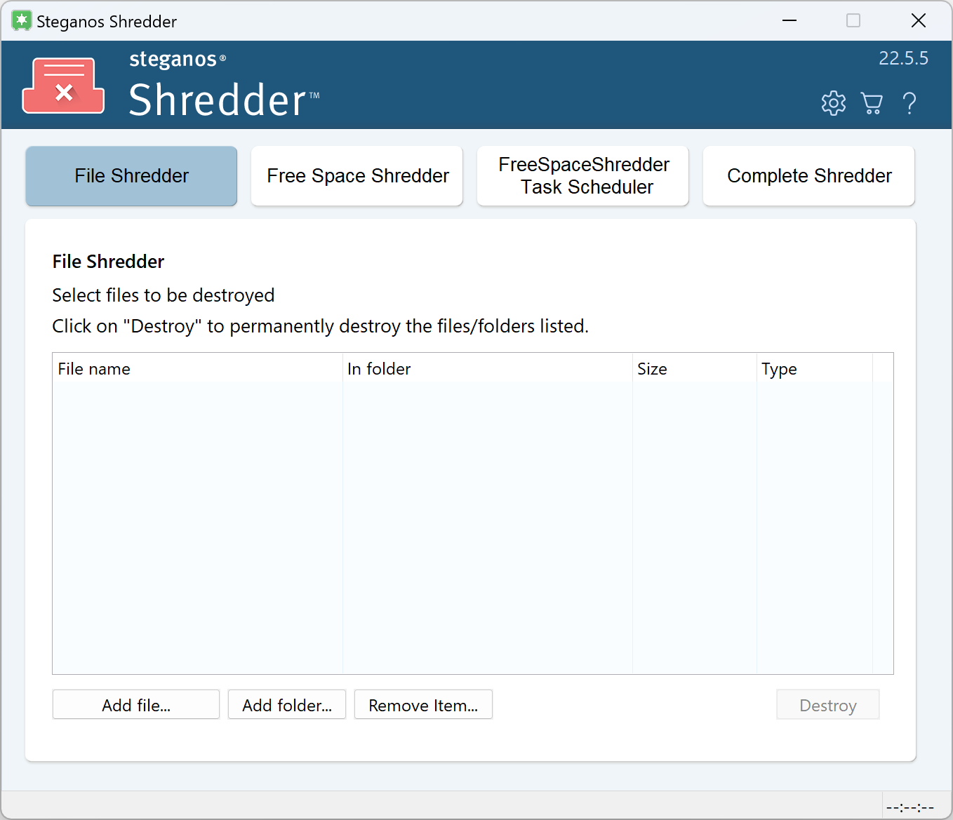 Securely delete files with no way for anyone to recover them - and wipe your HDD or SDD's free space.Screenshots